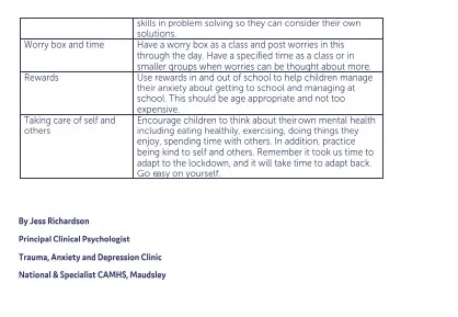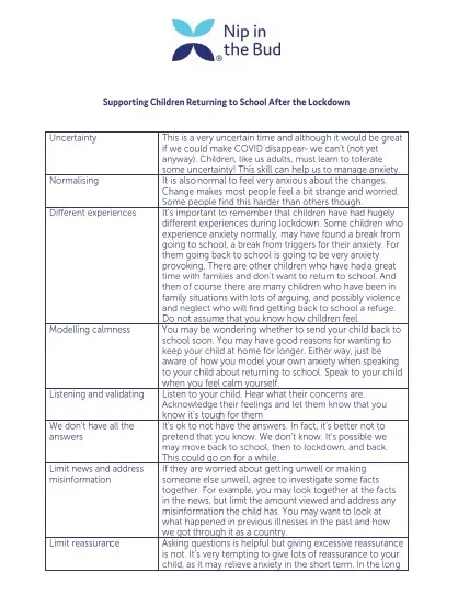 Nip it in the bud: Supporting children returning to school after school lockdown document and video below: